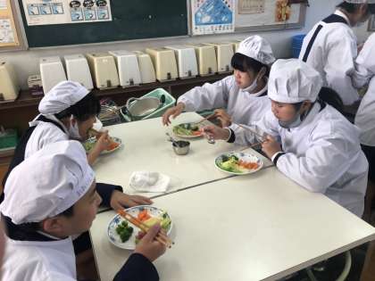 「ブロッコリーの芯も、刻んでサラダに入れている班がありました。えらいです。」
