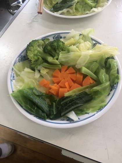 「ゆで野菜を『おいしい、おいしい』と食べた後の給食も、しっかり完食していました。」