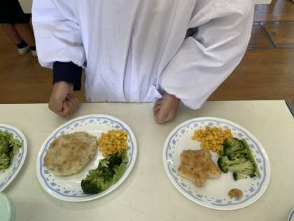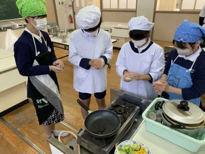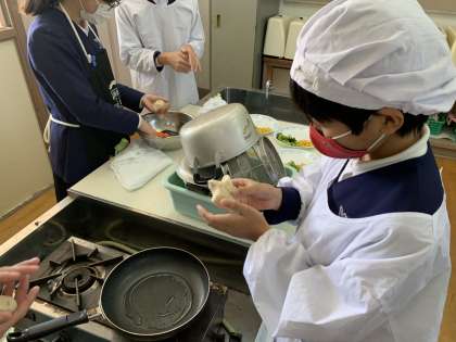 6年2学期の調理実習メニューは「ツナポテトハンバーグとゆで野菜」です。