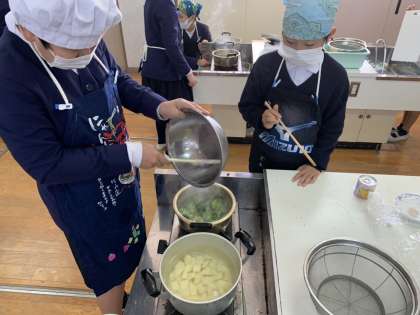 ゆでたジャガイモをつぶして、ツナをいれて混ぜたり、沸騰してからブロッコリーを入れたり。さすが、6年生。手際よく調理できている様子が伝わってきます。