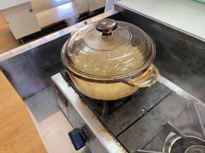 ご飯は、炊飯器ではなく、お鍋で炊きます。火加減を誤るとおこげがいっぱいになってしまいます。少しのおこげは、おいしいですけど(笑)