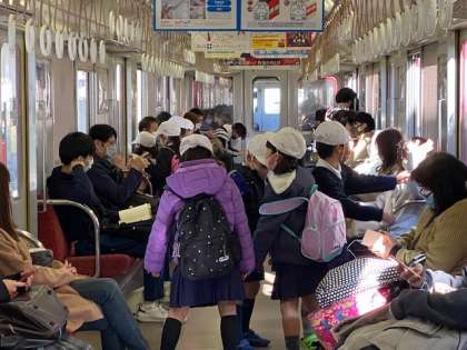 電車の中では、特にコロナ禍ですので、おしゃべりのないように注意を受けていたので、静かに過ごせていました。