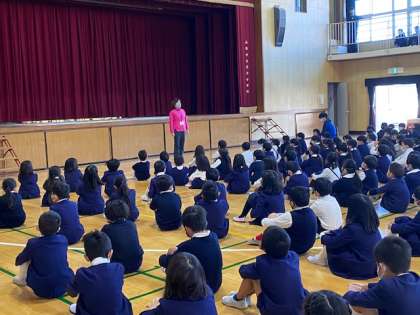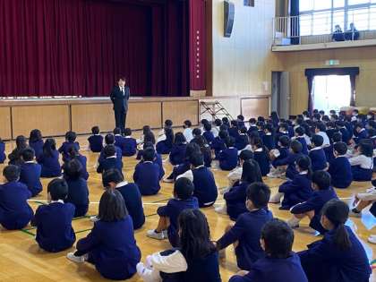 今日の児童朝会での校長先生のお話は、「物を大切にしよう」という内容でした。