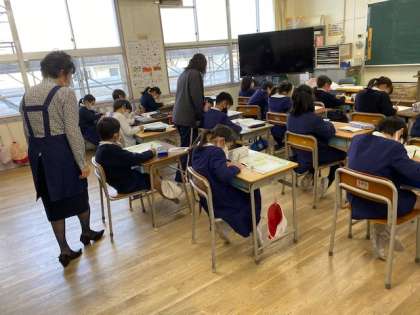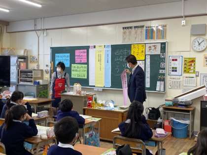 2時間目は、「日本一高いところにある郵便局はどこですか」「世界一低いところにあるポストはどこですか」などクイズも交えながら、子どもたちの興味関心を引きつけ、楽しく授業を進めてくださいました。