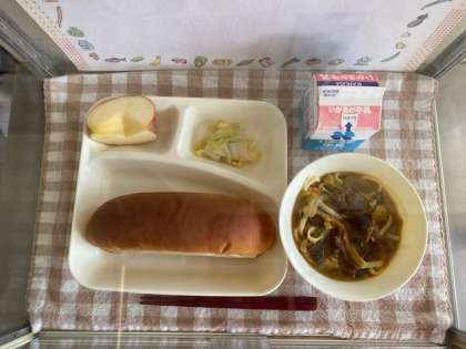 リンゴは一人1/4切れですが、1年生には、食べやすいように1/8切れを二つにしてくださってました(^O^)