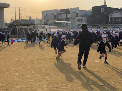 本日の児童集会は、運動委員会による「先生鬼ごっこ(ふえ鬼編)」です。