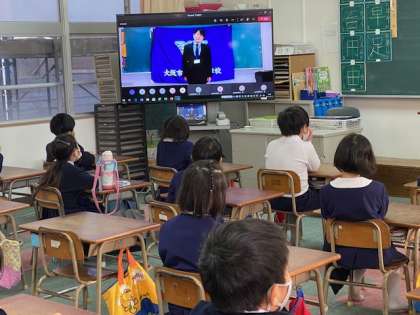 週初めに朝会をリモートで実施する学校が多いことから、なかなか繋がりにくいというアクシデントが…。不具合を生じつつも、全クラスに配信することができました。
