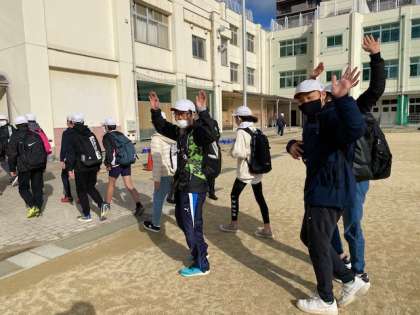 校長先生のお話のあと、注意事項を高倉先生から聞き、「ルールを守らないようなことがあったら、特別な宿題がでます!」と矢田先生からも釘を刺され(笑)、元気よく「いってきます!」と、出発して行きました(^O^)