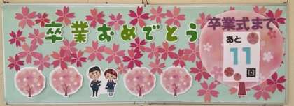 給食室からのお祝い掲示です。松坂先生が、コツコツと作成されてました。鷹合小学校で食べられる給食のカウントダウンが…(ToT)