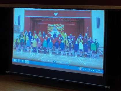 続いて、6年生から在校生への、お別れと感謝のメッセージです。6年生も、DVDで動画を見せてくれました。