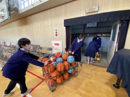 それぞれの委員会で、6年生に感謝の気持ちを伝えたり、5年生にこれからの鷹合小学校のことを託すメッセージを伝えたり、また、新1年生の入学式用の掲示物を作成したり、自分たちが使ってきた体育用具を片付けたり…。