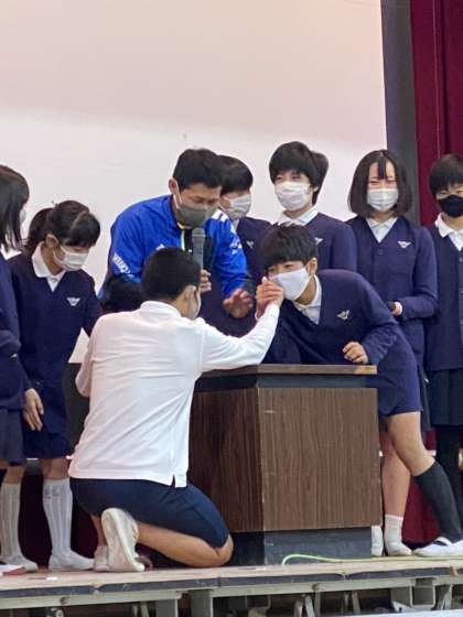 先日の、先生たちの腕相撲大会に触発されて(?)、腕相撲大会も実施。決勝戦に写真です。