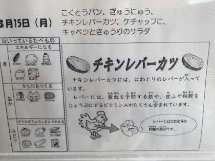 本日の献立 ・チキンレバーカツ