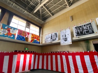 6年生の思い出の版画共同制作を、在校生にも見てもらおう、と卒業式のままに置いておきました。