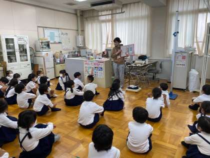 「けがをしたとき」「しんどくなったとき」、それぞれの場合で、入口も違います。保健室の中では、静かにして大きな声は出しません。ベッドで休んでいる人がいる場合もあるからです。また、保健室内の冷蔵庫や戸棚の中は、開けたりさわったりしてはいけません。ということを教えてもらい、しっかりと聞けていた1年生です。