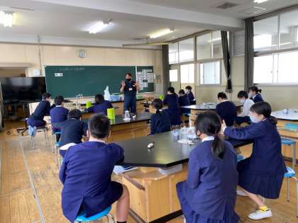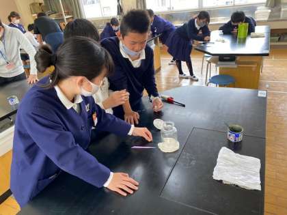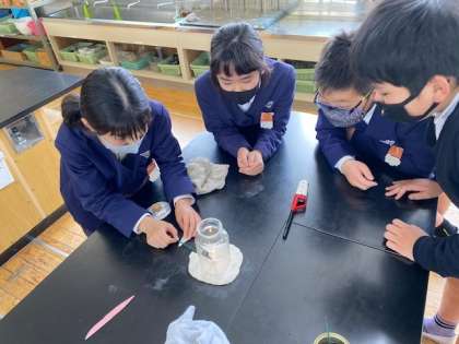 理科を教えてくださる先生は、今年赴任されてきた谷先生です。6年最初の単元「ものが燃えるとき」の実験の様子です。