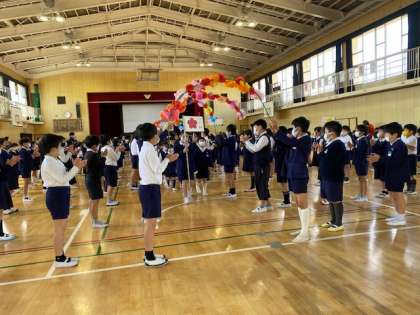 最後に、もう一度花道を通って、うれしそうに退場していった1年生でした。来週からは、朝会にも出てくることになりますね。
