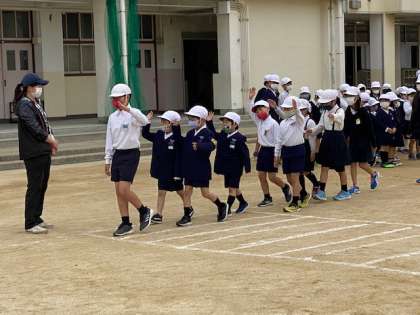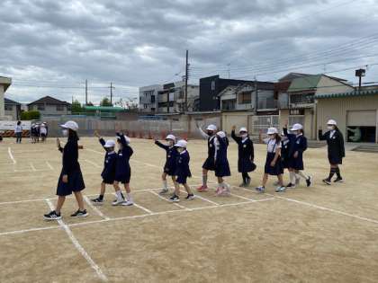 1丁目・2丁目・3丁目・4丁目ごとに分かれ、班長のところに集まります。1年生は、班長が迎えにいってくれました。
