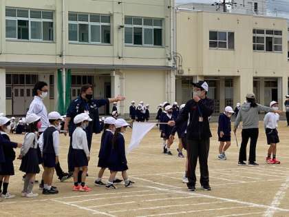 1年生は、今日から自分たちで下校するようになったのですが、後ろからついていくと、信号の渡り方は、しっかり学んだとおりにできていました。