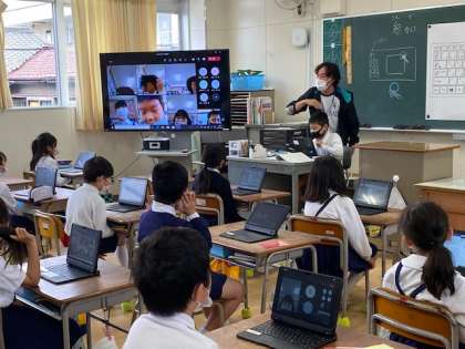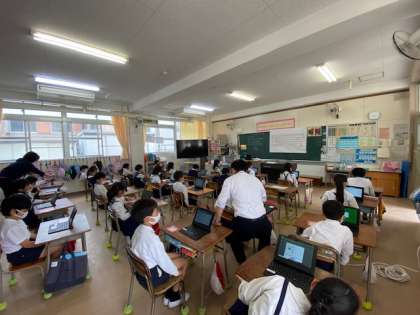 タブレットを使用してのオンライン学習は、2年生以上が対象となっています。2年生も、タブレットにログインする方法、情報教育の基礎となる「パスワード・IDの取り扱いの重要性」について学びました。