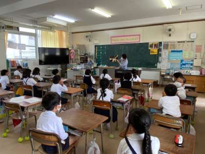 1か月に1回、1年生と2年生が、絵本を数冊読んでもらいます。子どもたちは、熱心に耳を傾けて、お話の世界に引き込まれていきます。頭が活性化されて、1時間目の学習へスムーズに入れます。