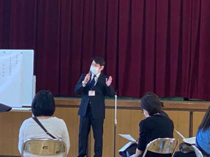 会長からの挨拶のあと、小松校長より、現在の鷹合小学校の様子、取り組み等についての話がありました。コロナ禍での感染予防対策の徹底と学びの保障について、鷹合の取り組みについての説明に、熱心に耳を傾けていただきました。ありがとうございました。