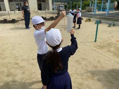 「天気と一日の気温」の学習で、温度計を正しく使いながら、晴れの日の気温の変化を一時間おきに記録しました。