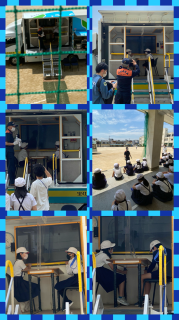 6年生は、地震に揺れを体験できる「起震車」に乗り込みました。