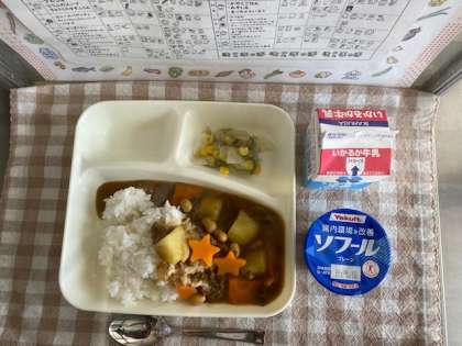 給食のカレーライス🍛にも、ラッキーにんじん🥕が🎵