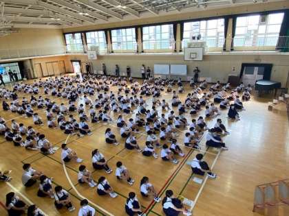 久しぶりに、講堂に集合しての児童集会です。