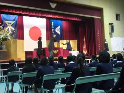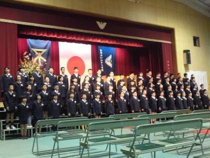 あいにくのお天気ではありましたが、在校生・教職員、保護者・来賓・地域の皆様の見守る中、75名の子どもたちが本校を元気に巣立ちました。