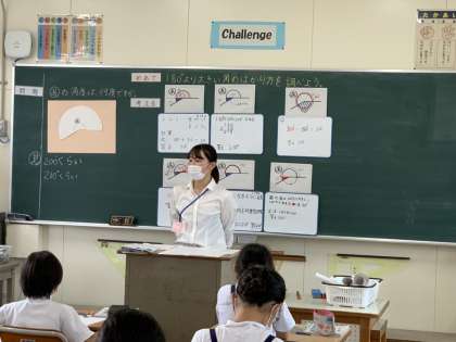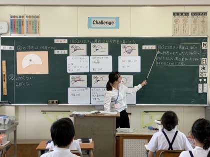 昨日は、4年2組で教育実習をしている坂本先生が、教育実習のまとめとなる、算数の授業研究を行いました。