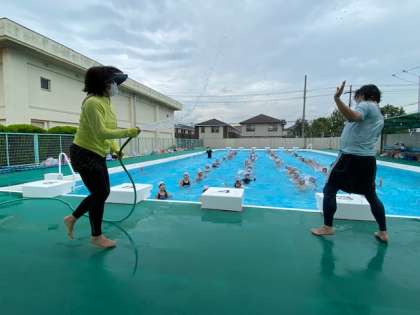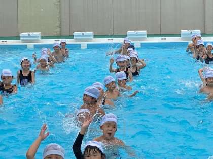 今年度6回目のプール学習です。随分、水に慣れてきた2年生です。今日は、水温も29度と高く気持ちよかったです。