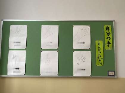 2枚目は、5年生「自分の手 えんぴつDEデッサン」