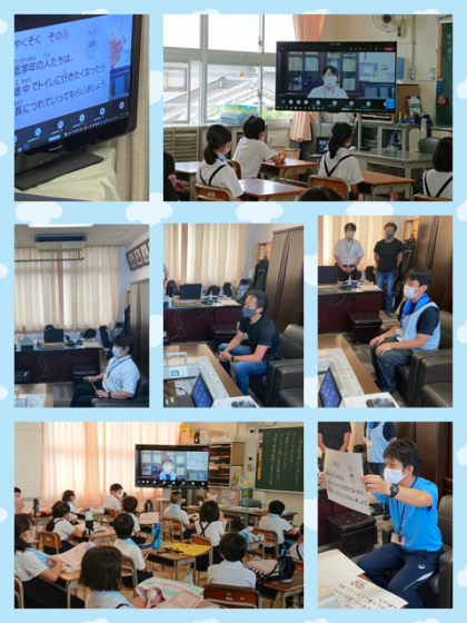 子ども達は、マスクからもこぼれる笑顔で登校してきました。リモートによる、「開会式」が、校長室から放送されました。