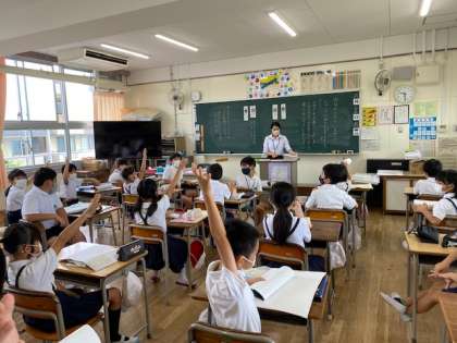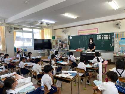 学級では、夏休みの間に取り組んだ課題や自由研究、絵画作品などを提出したり、コロナウイルス感染予防についての話を聞いたりしました。