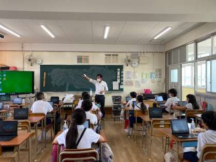 ネット環境がよくなく、クラス全員が一斉にタブレットを使用すると、動作できなくなるという問題点を解消するために、ルーターが教育委員会から送られてきました。