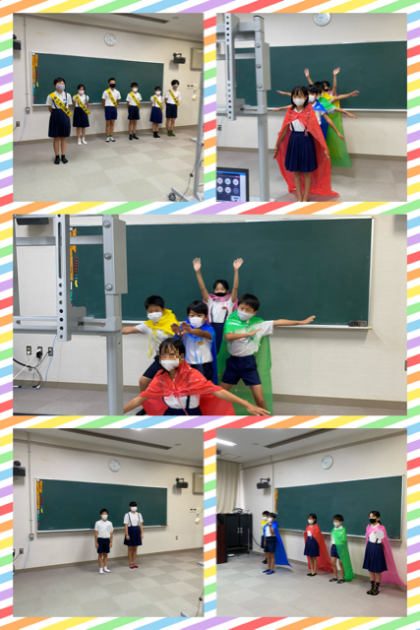 児童集会は、来週から始まる「あいさつ週間」の呼びかけでした。生活・集会委員が中心になって、あいさつレンジャーの登場です。決めポーズがバージョンアップしていて、嵐の千手観音(知る人ぞ知る)からのあいさつビームや、EXILE風のグルグルダンス(わかります?)など、笠井監督が数日前から熱い指導をいていた成果が、発揮されていました。