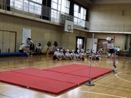 今日の5・6時間目に、体育で学んできた「走り高跳び」の記録会を学年で実施しました。