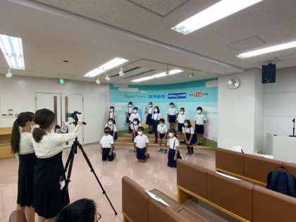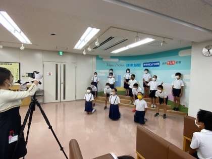 見学後に、DVDを見せていただきながら、読売新聞社のしくみについて学びました。クイズはほとんどの子どもが全問正解。しっかりと視聴できていました。