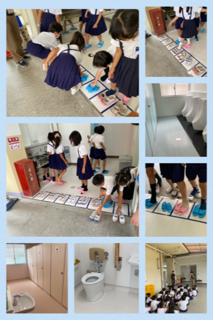「きれいに揃えます!」「丁寧にトイレを使いたい!」とやる気満々の1年生たちでした。(^O^)