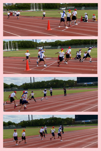 そしてリレー。ヤンマーのフィールドいっぱいに400メートルリレーです。アスリートたちしか経験できないコースを走ることができました。フィールドの一番奥の場所で走り終わったチームは、本部前に帰ってくるのが大変だったと思われますが、キビキビと移動することができていました。