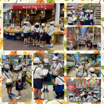 例年でしたら、スーパーの見学で、一度経験しているインタビューなのですが、今年は緊急事態宣言中で実施できませんでした。友達のお母さんでも、ドキドキしていた様子です。商店街に来られている一般のお客さんにもがんばってインタビューをしている班もまりました。