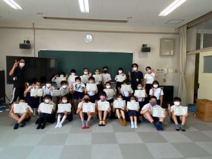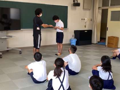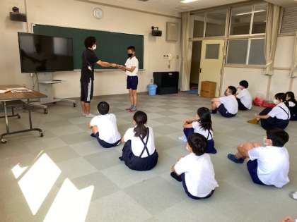 「一か月前の結団式で『見る人を感動させられる、低学年のあこがれとなり、大きくなったら応援団になりたいと思われる応援団になろう』と話したけれど、その通りとなった。いろいろな先生たちから『感動した、よかった』と言われたし、1年生の作文には、『応援団がかっこよかった』とたくさん書かれていたと久野先生から教えてもらった。先生も君らの姿に感動した。ありがとう。」というお話がありました。