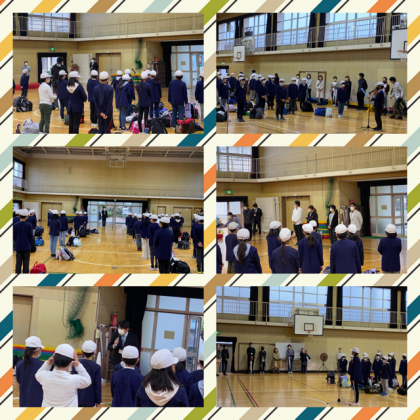 昨日までは、よい天気だったのですが…。あいにくの雨模様。急遽、出発式は講堂での実施に変更です。お見送りの保護者の方々もたくさん来ていただきました。ありがとうございました。