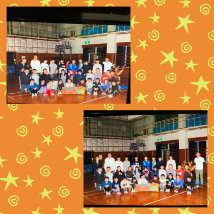キャンドルファイヤーを実施する体育館に集合した際に撮ってもらいました。