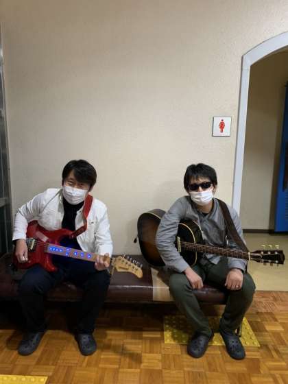 二枚目の写真は、出番待ちのブラザーズの様子です。サングラスかけてますが、中に入ると真っ暗で何も見えないので結局外したらしいです(笑)