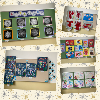作品展に出した作品以外にも、絵画作品が教室や廊下に掲示されています。