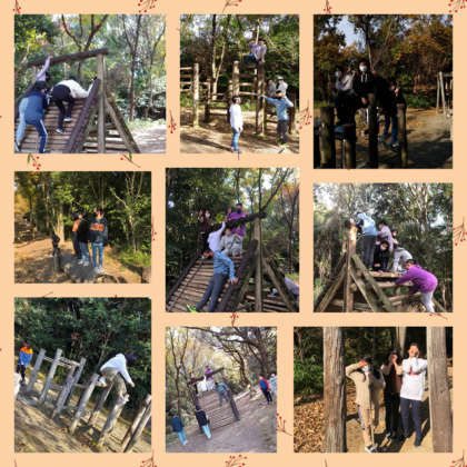 片付けが予定より早く終わったので、森の中のアスレチックで遊ぶことができました。