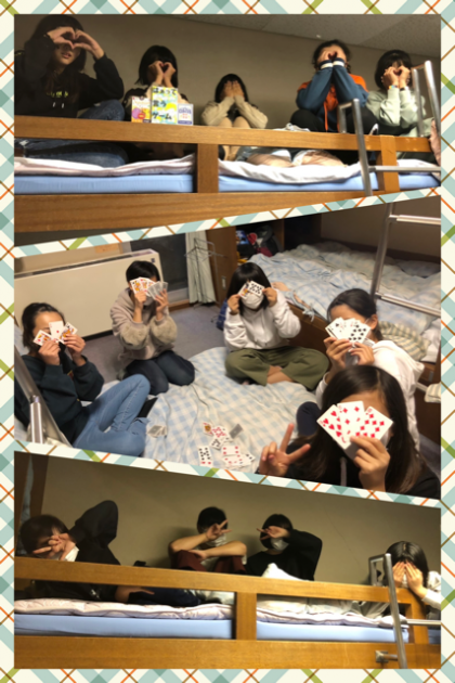 トランプやなんじゃもんじゃゲーム(それって、なんじゃ?(笑))、キャンドルファイヤーの歌の練習、仮眠(笑、夜の攻防があるのかも)など、それぞれのんびりゆったりと過ごしているようです。